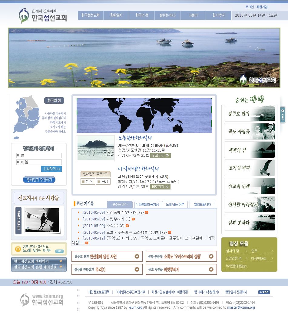 소개, 선교동영상, 섬정보, 목사칼럼, 후원방법 수록.