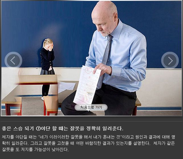 잘못을 정확히 말해주고 잘했을 때의 결과를 말해주는 것. 비전있는 사람이 할 수 있을 것 같네요.