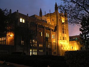 역사1882년 로스앤젤레스의 주민들의 요청으로 캘리포니아 주정부는 남부 캘리포니아의 인구 증가에 대응하기 위해 교사를 키우기 위한 학교를 설립하였다. 1914년 이 학교는 할리우드로 옮겨졌으며, 1917년에 이 학교를 버클리에 이은 두 번째캘리포니아 대학교로 만들기 위한 프로젝트가 추진되어, 1919년 캘리포니아 주 정부의 승인을 받았다. 당시의 이름은캘리포니아 대학교 남부 분교(Southern Branch of the University of California)였고, 이로 인해 교육학부에 이어 일반 인문학부가 설립되었다.