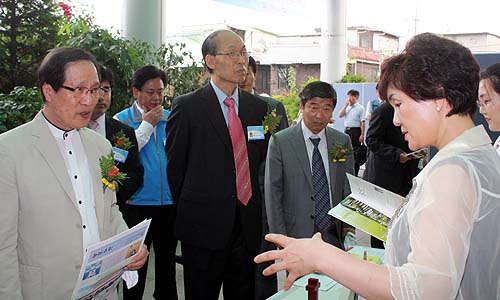 ▲박람회 주요 참석자들이 기독교 교육과 관련된 부스를 둘러보고 있다. ⓒ신태진 기자 |