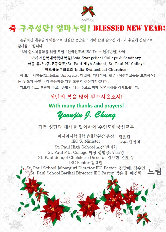 [선교지소식] 정윤진 변미화 선교사 성탄축하