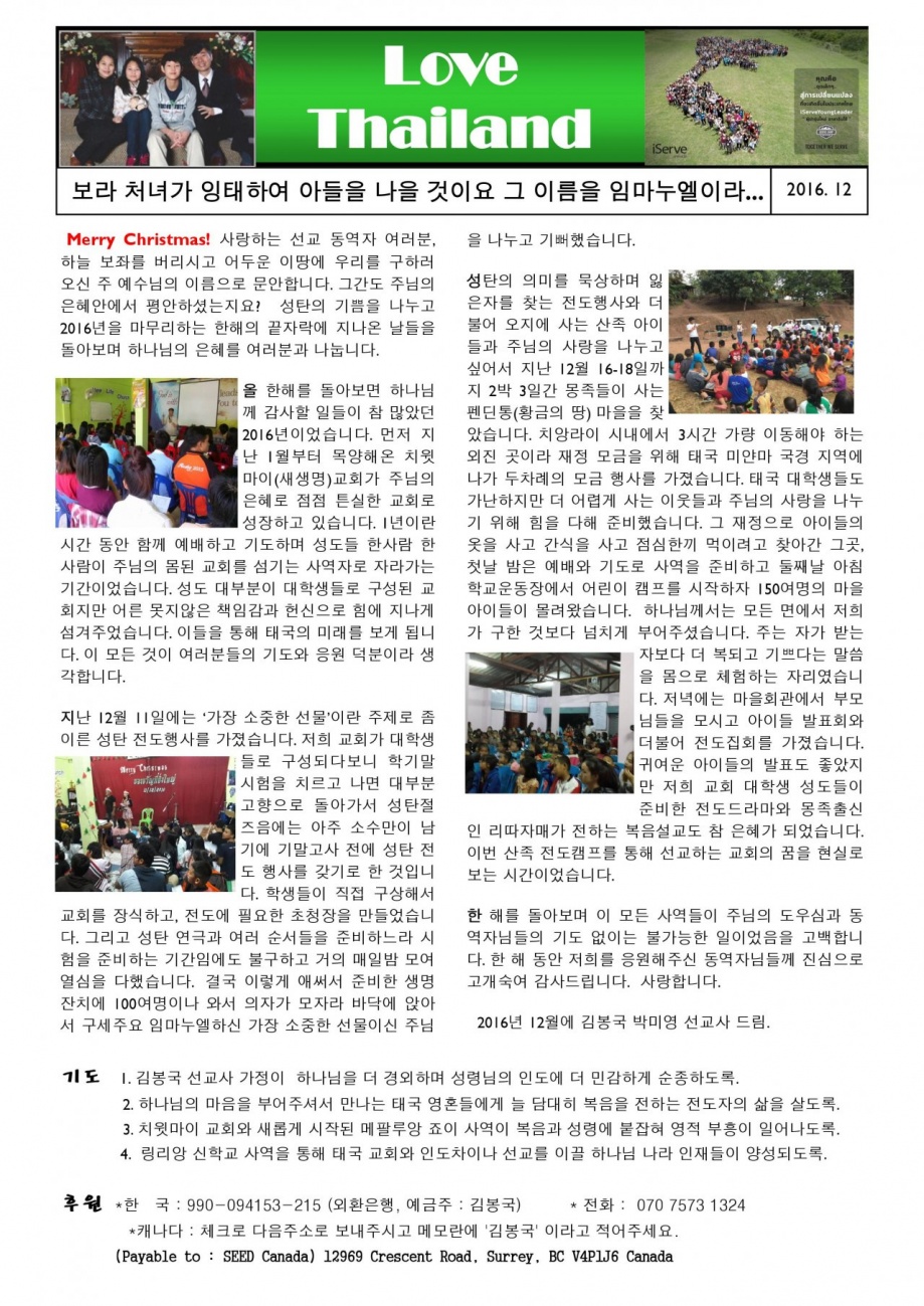 [선교지 소식] 김봉국 박미영 선교사 선교소식