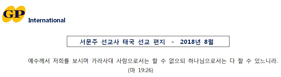 태국을 품어 주시고 기도와 물질로 함께 해 주심에 감사드립니다.