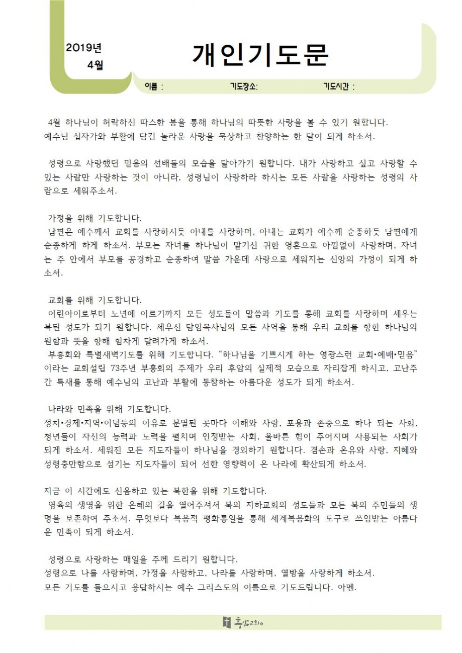 2019년 4월 개인기도문