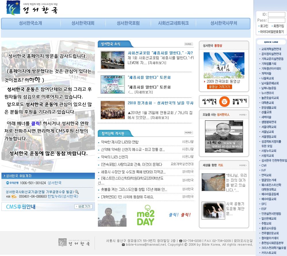 사회선교 운동단체, 성서한국대회 및 포럼정보, 관련소식, 보도기사 수록.