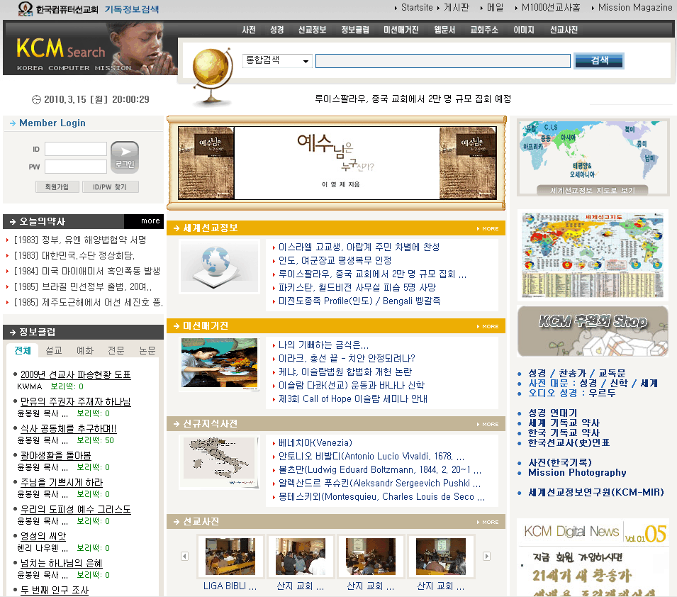 국내외 기독교 사이트 링크, 기독교인 행사, 성경인물사전, 지명사전, 선교단체 소식 수록