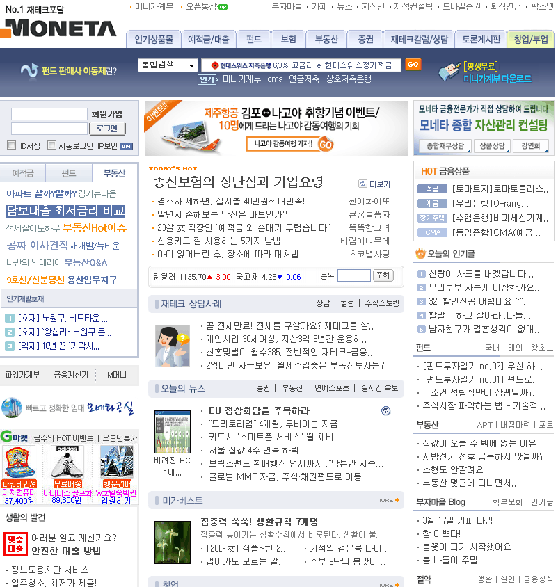 유무선 연계 금융 전문 사이트, 증권, 재테크, 부동산, 금융상품, 보험 정보 제공.