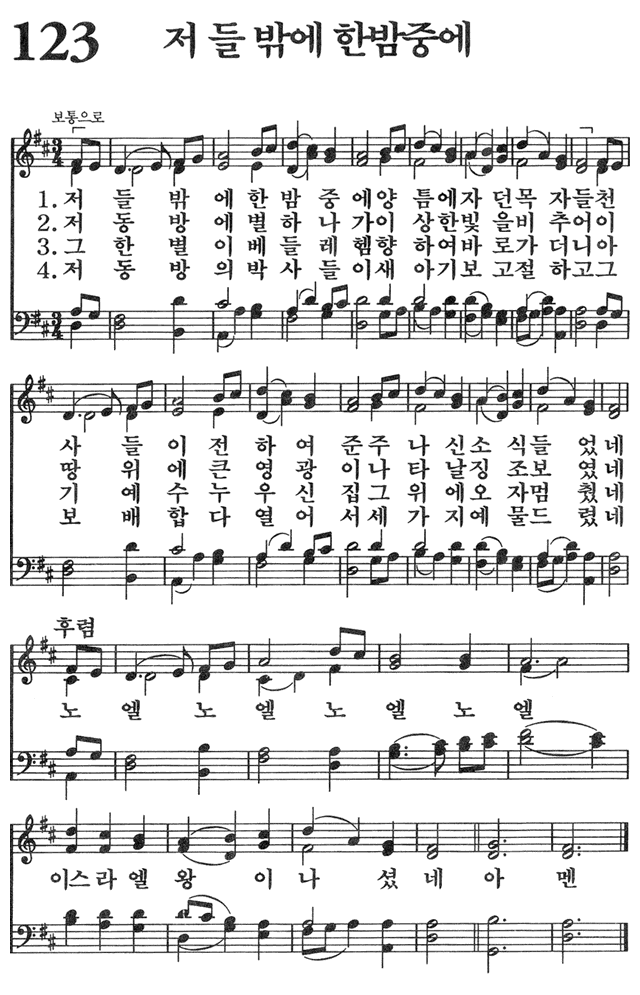 (1) 저 들 밖에 한밤중에 양 틈에 자던 목자들 천사들이
