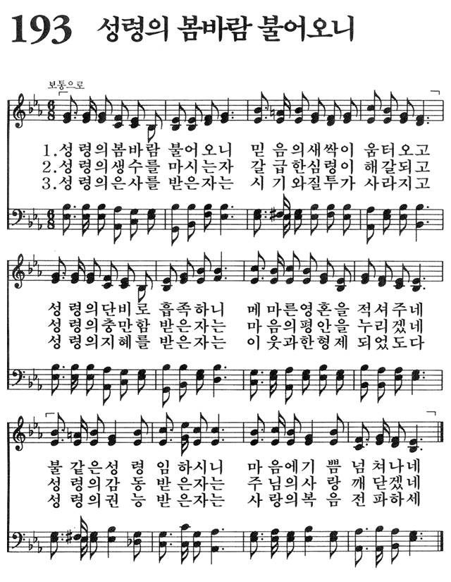 (1) 성령의 봄바람 불어오니 믿음의 새싹이 움터오고