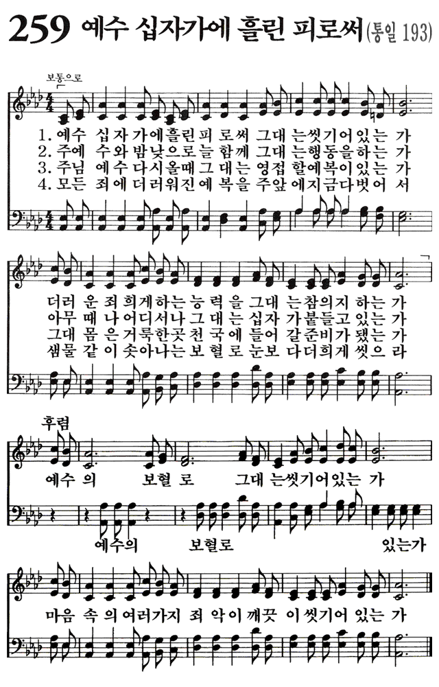 후렴:예수의 보혈로 그대는 씻기어 있는가