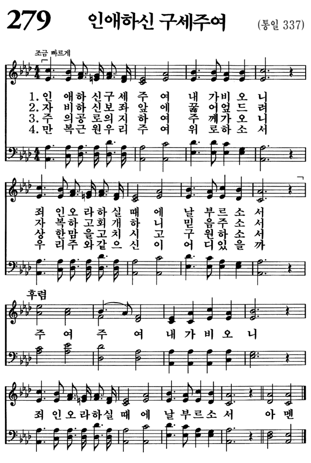 (1) 인애하신 구세주여 내가 비오니