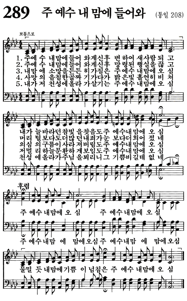 289. 주 예수 내 맘에 들어와