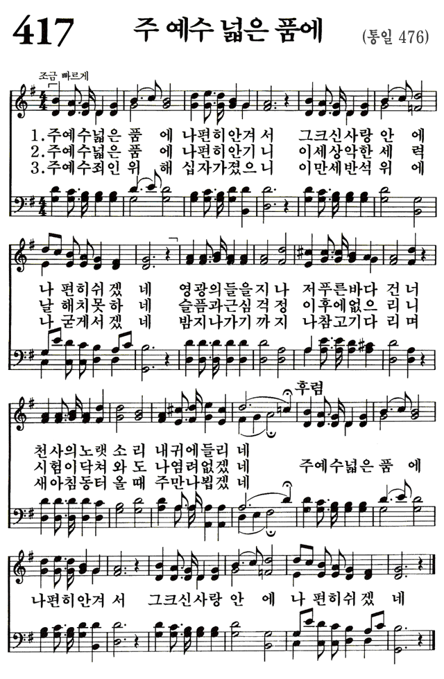 (1) 주 예수 넓은 품에 나 편히 안겨서