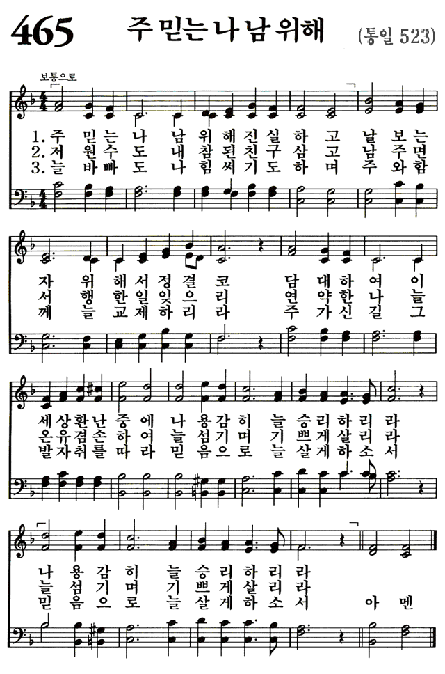 465. 주 믿는 나 남 위해