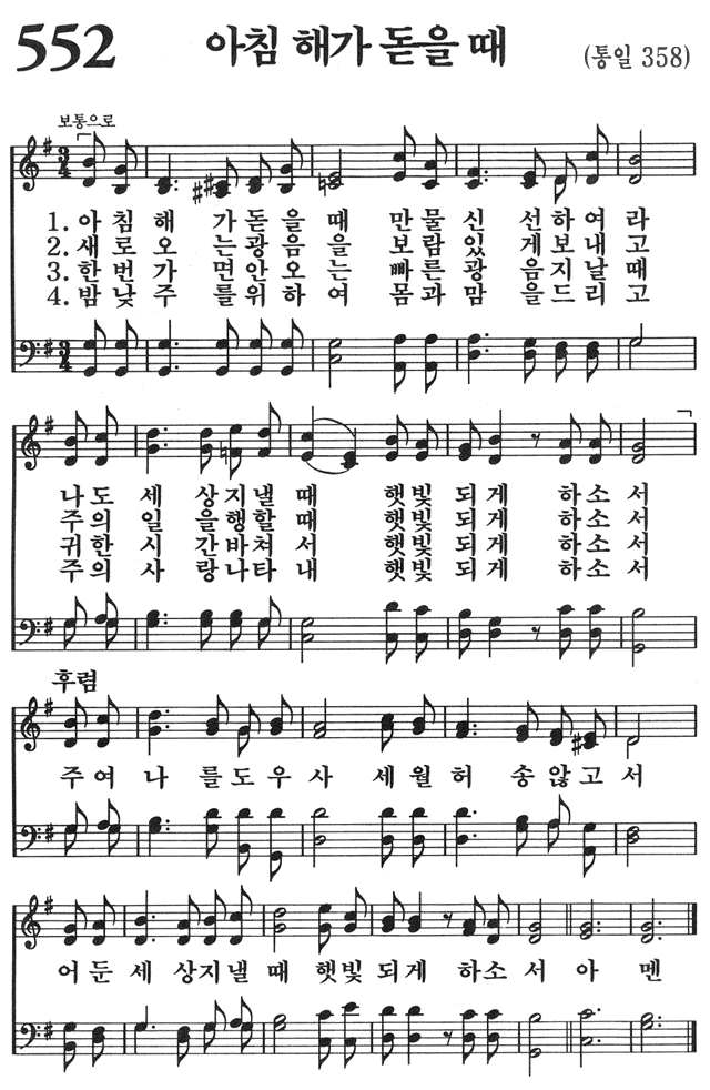 (1) 아침해가 돋을때 만물 신성하여라