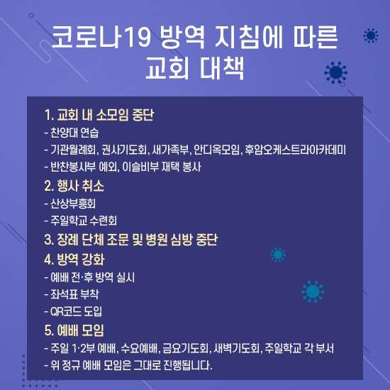 코로나 19 방역 지침에 따른 교회 대책