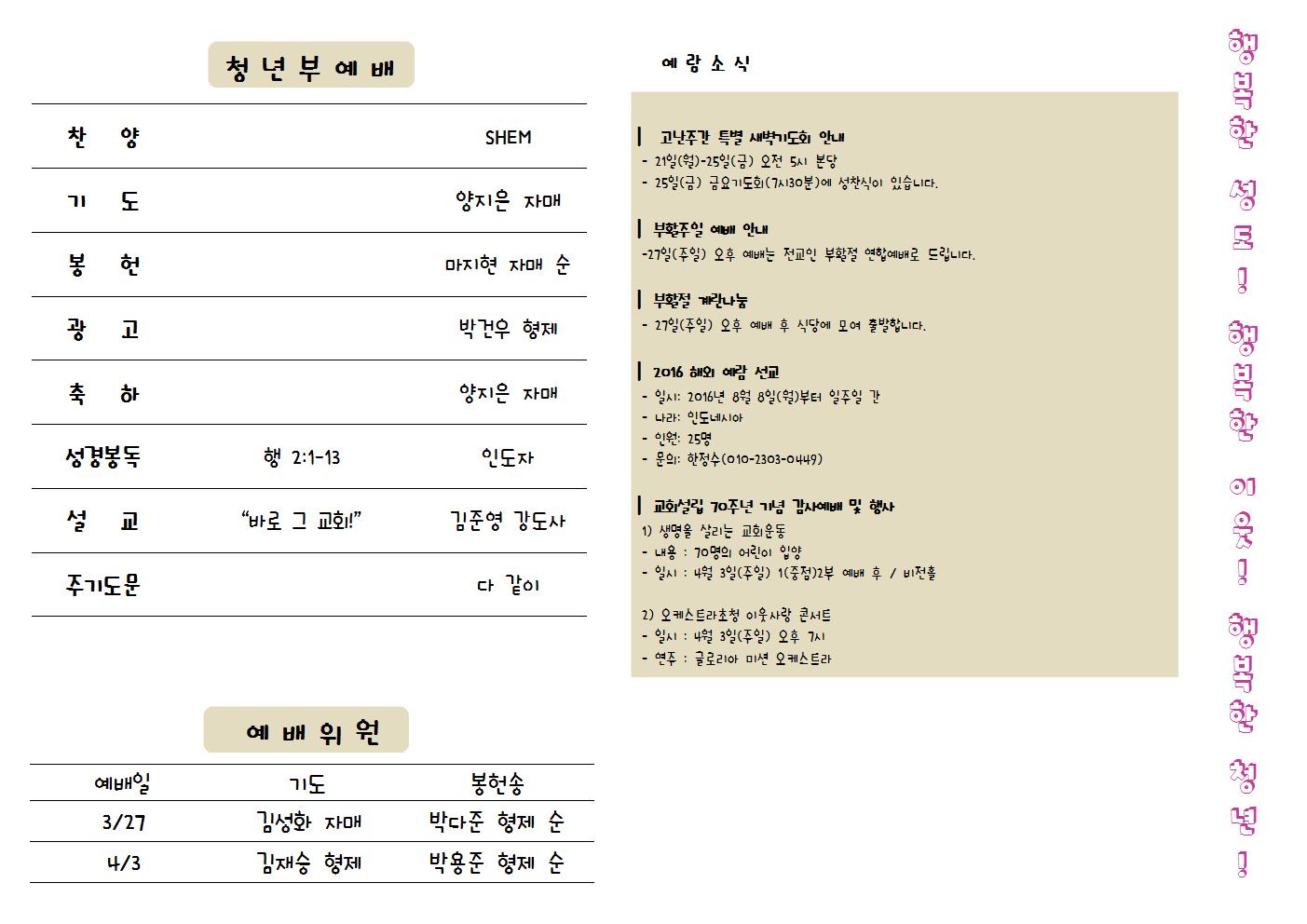 2016년 3월 20일 청년부 주보